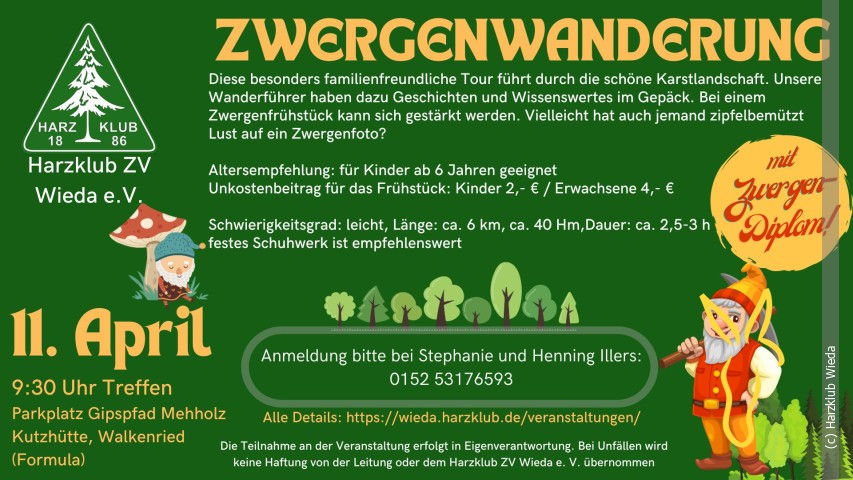 Die Teilnahme an der Veranstaltung erfolgt in Eigenverantwortung. Bei Unfällen wird keine Haftung von der Leitung oder dem Harzklub ZV Wieda e. V. übernommen