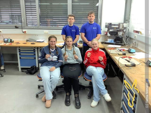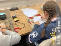 Die Schülerinnen bei ihrer spannenden Arbeit mit Lötkolben und Draht