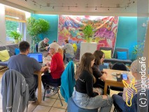 Zehn Seniorinnen und Senioren nutzen vor kurzem wieder die Gelegenheit, sich von den Digitalscouts Im Jugendcafé Badenhausen helfen zu lassen. Eingeladen hatte die Seniorenbeauftragte der Gemeinde, Rebecca Singh, die fünf Jugendliche, darunter auch der Auszubildende der Gemeinde, Marcio Schüler, dafür begeistern konnte, Hilfestellung zu leisten.